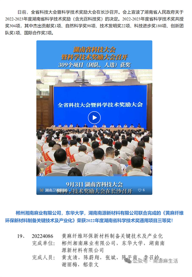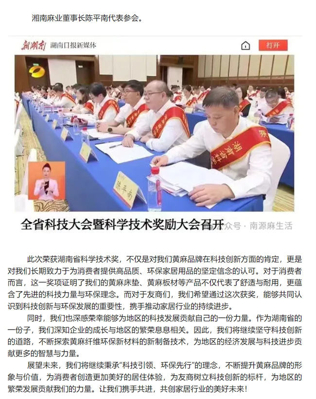 科技之光!黃麻品牌榮膺湖南省科技獎,共筑綠色家居夢